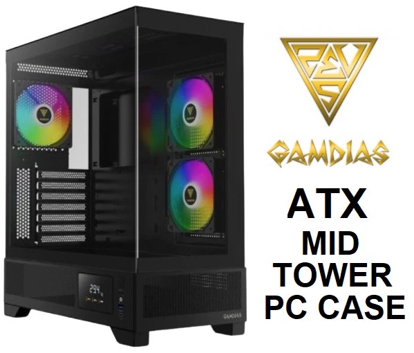 GAMDIAS Atlas M1 ATX Mid-Tower PC Computer Case, 3 FANS INCLUDED - BLACK
