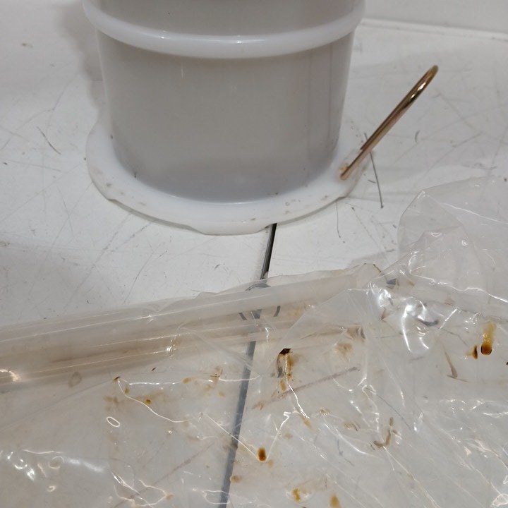 there is fluids on the tubing/in the bag of the tubing there is some fluids still inside of the cannister