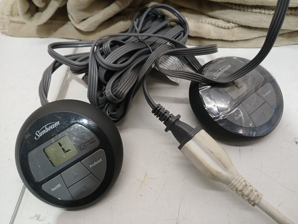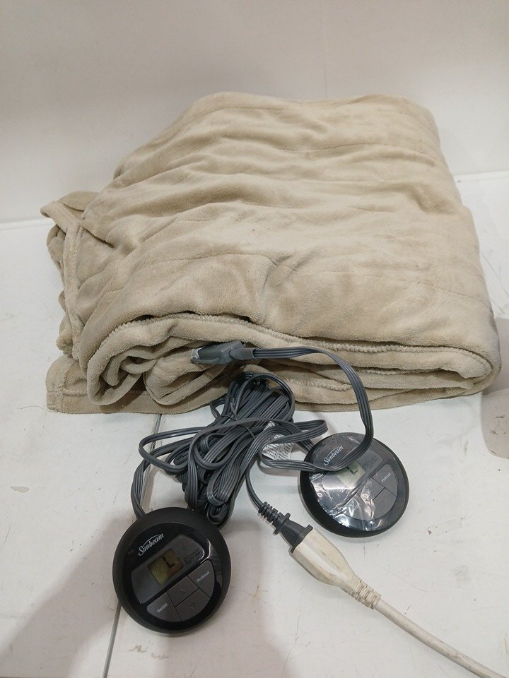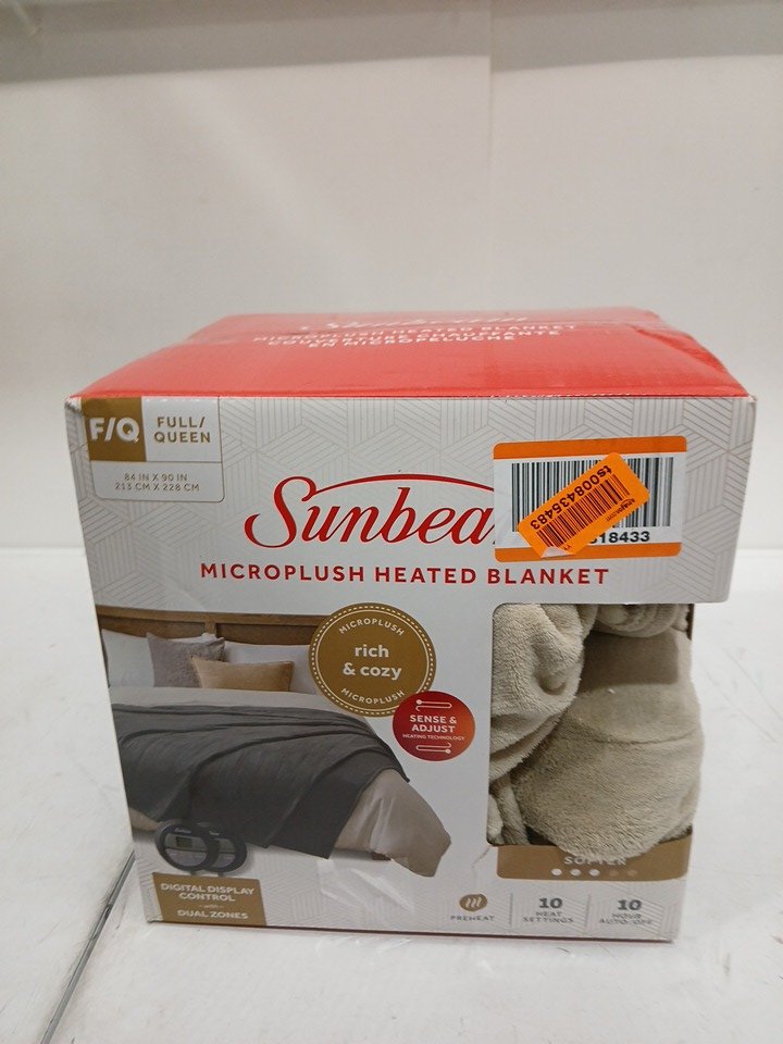 SUNBEAM MICROPLUSH ELECTRIC HEATED THROW BLANKET WITH 10-HEAT SETTINGS & DUAL PADDLES - full/QUEEN - MUSHROOM - (MODEL: 1580354)