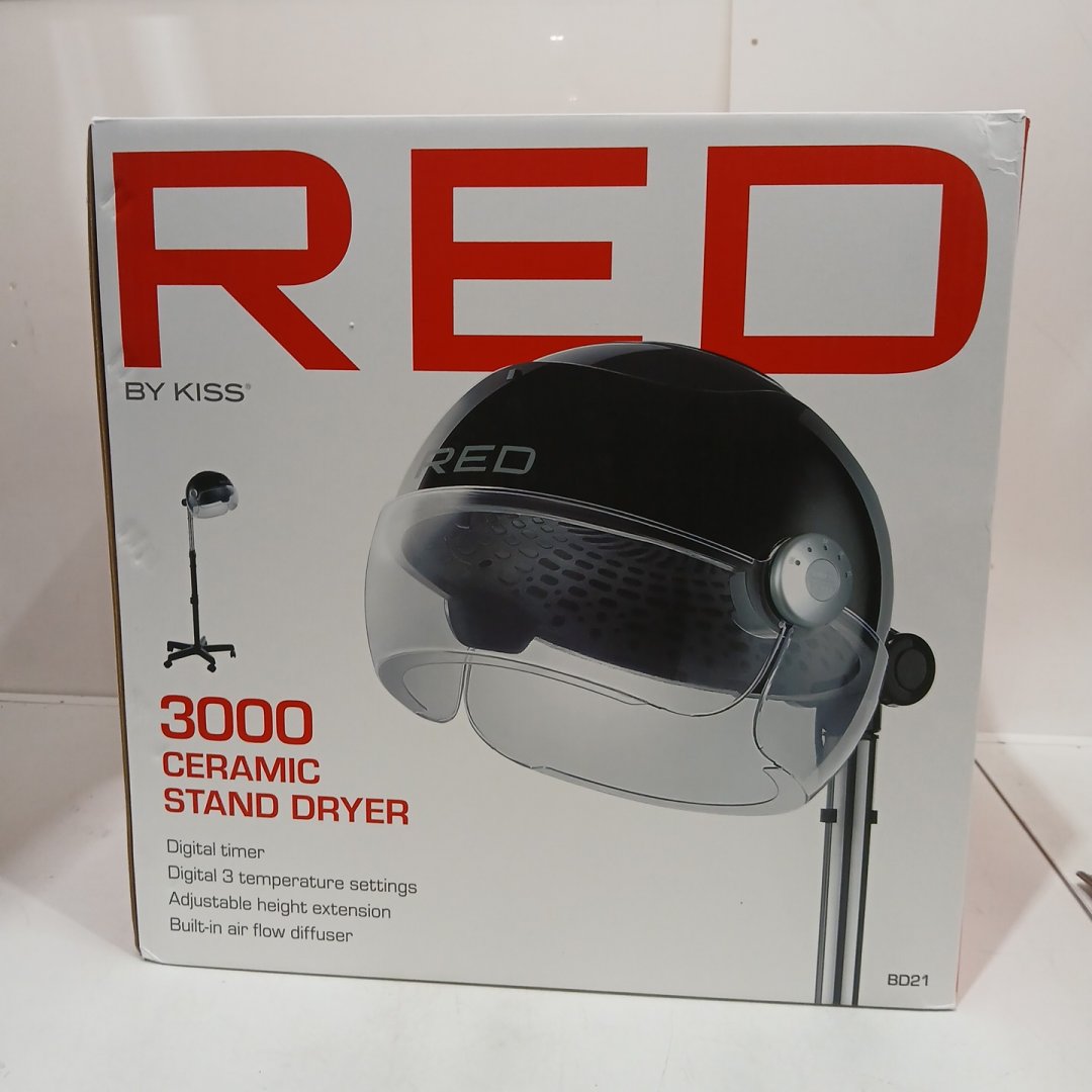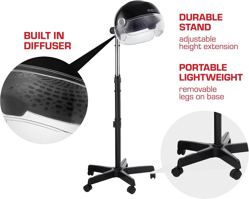 red beauty by kiss 3000 ceramic stand hood dryer with digital timer, 360* wheels, 3 temp settings & quick dry - Black (Model: Bd21)