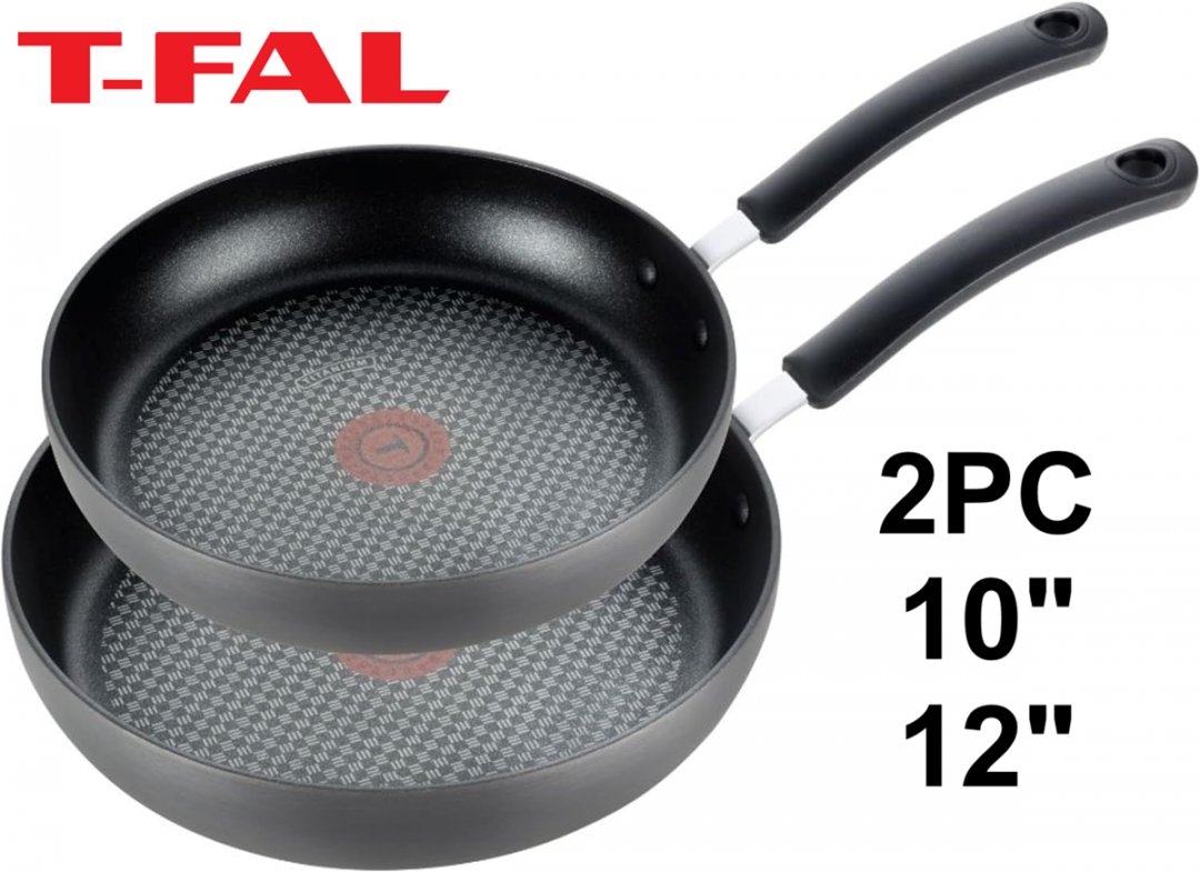 2PC T-FAL Ultimate Hard Anodized Nonstick Fry Pan Set - 10" / 12" - Black (Model: 646ONX7J)