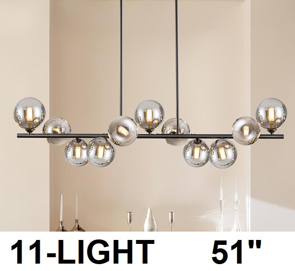 uznhty 11-Light Modern glass Chandeliers Pendant Ceiling Lights - 51" - black/silver - (model: 48392)