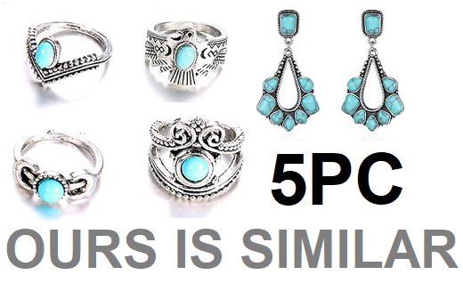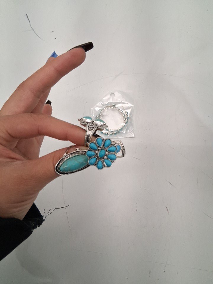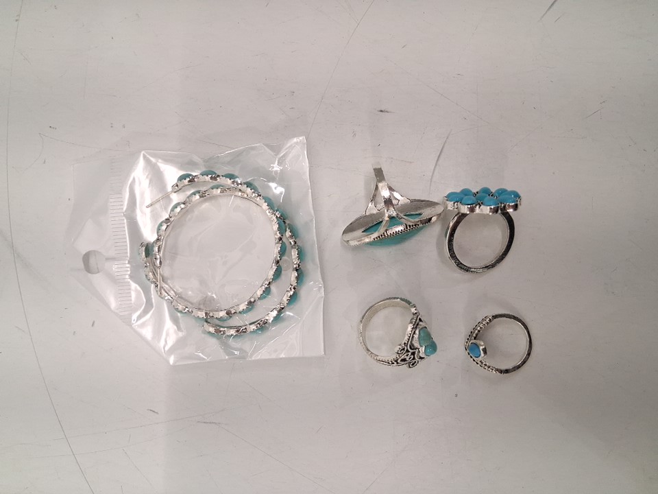 5PC ASSORTED TURQUOISE COSTUME JEWLERY - ASSORTED RING SIZES