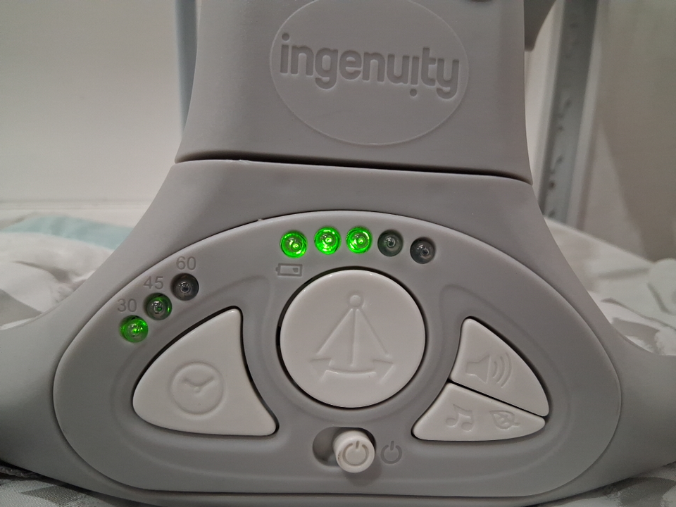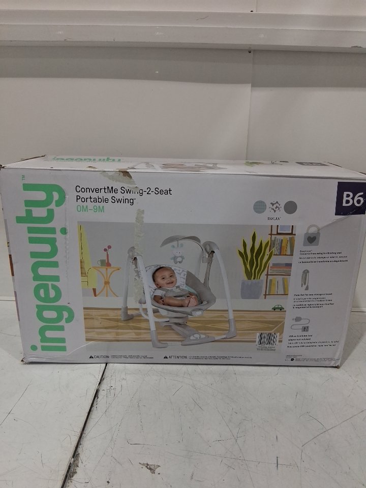 Ingenuity 2-in-1 convertme compact portable baby swing & seat with vibrations & nature sounds - battery powered - 20lbs max- raylan theme/grey (model: ‎12189)