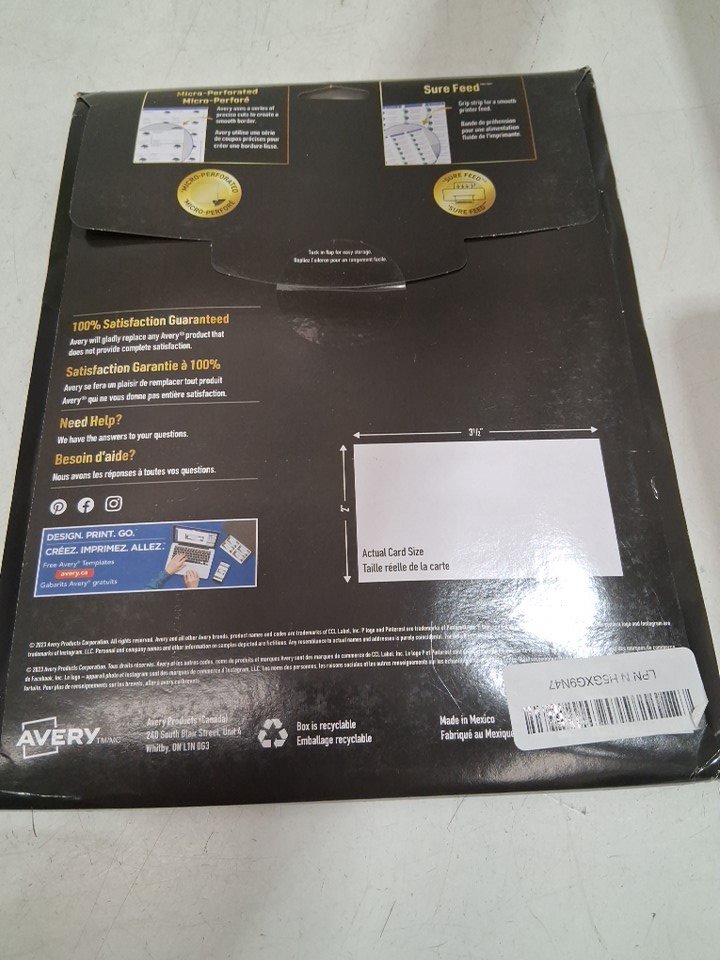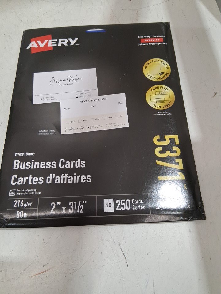 250PC AVERY LASER BUSINESS CARDS - 15 PAGES/250 CARDS - 2" x 3 1/2" - WHITE (MODEL: 5371)