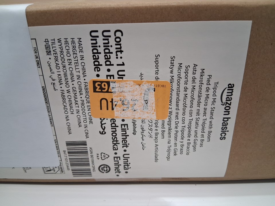 AMAZONBASICS FOLDING TRIPOD MICROPHONE STAND WITH BOOM ARM - 3FT TO 7FT - BLACK (MODEL: TMS130)