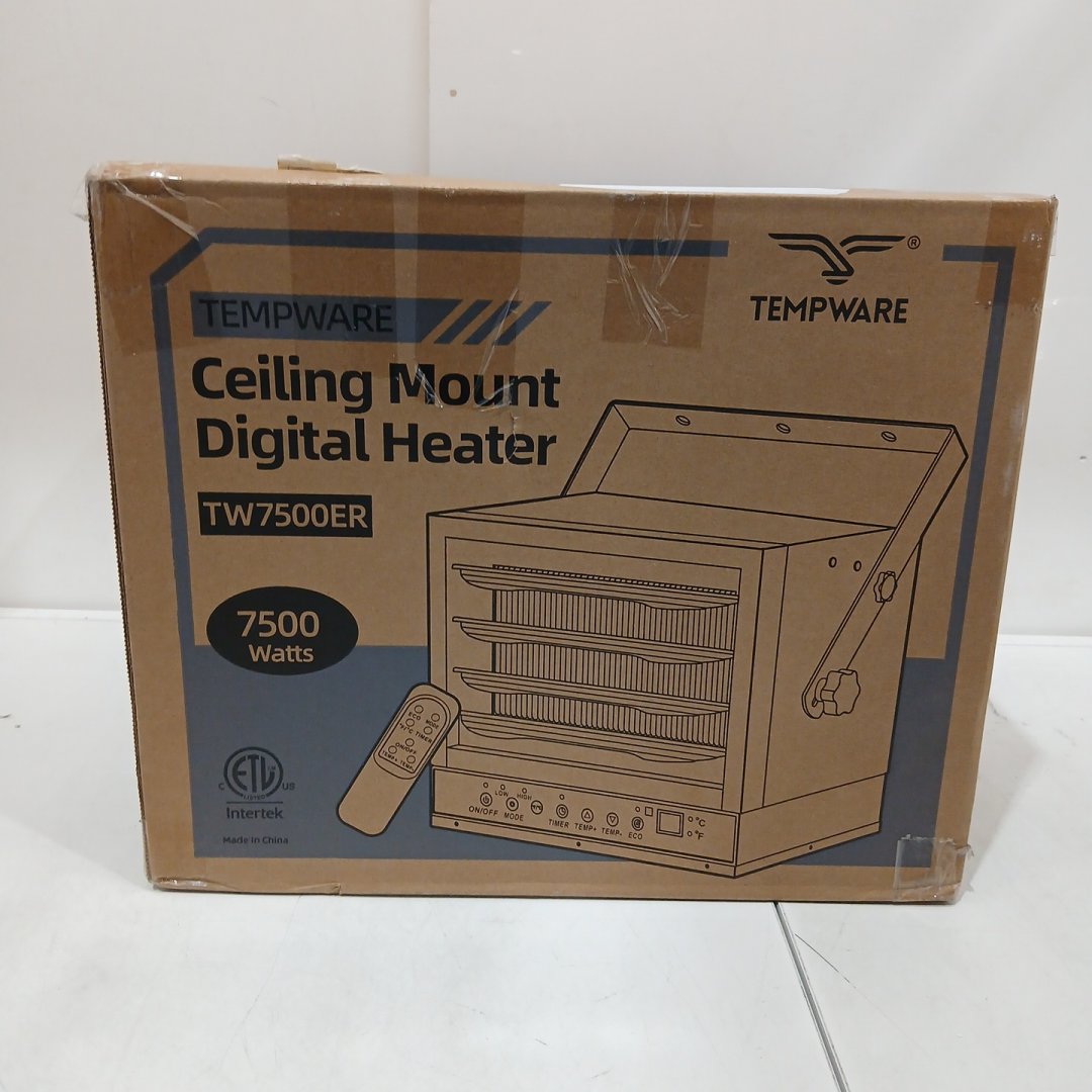 TEMPWARE 7500W Electric Garage Heater, Digital Fan-Forced Ceiling Mount Shop Heater with Full-Function Remote, 240-Volt Hardwired 12-Hour Timer - BLUE (MODEL: TW7500ER)