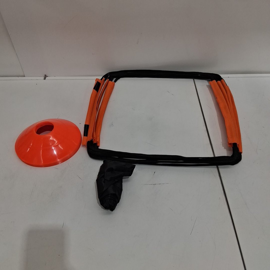 8-RUNG AGILITY LADDER TRAINING SET WITH 12 CONES AND STORAGE BAG - BLACK/ORANGE