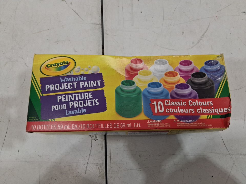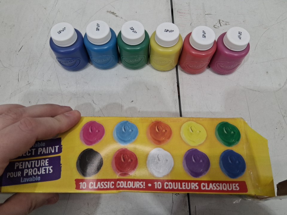 Item shows signs of previous use such as some of the contents are missing from bottles. Item does NOT include 4 containers of paint such as: - Black - White - Orange - Purple