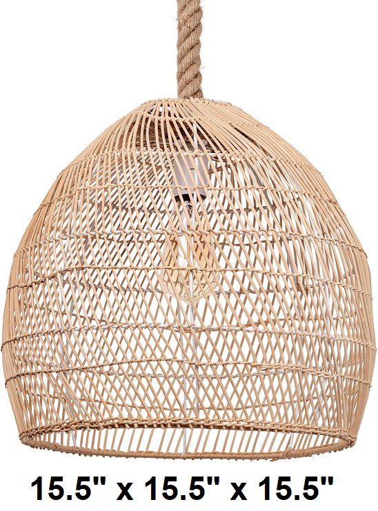 WalmHomie 1 Light Hand Woven Pendant Light Rattan Lamp Shade - 15.5" x 15.5" x 15.5" - beige