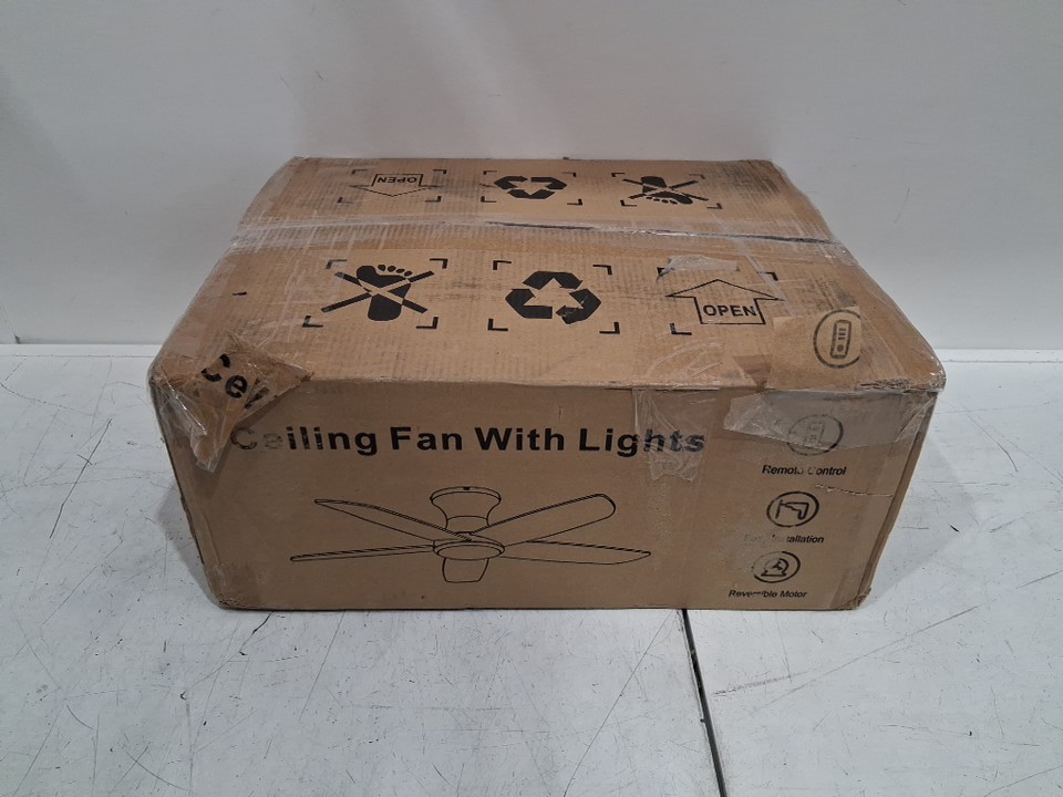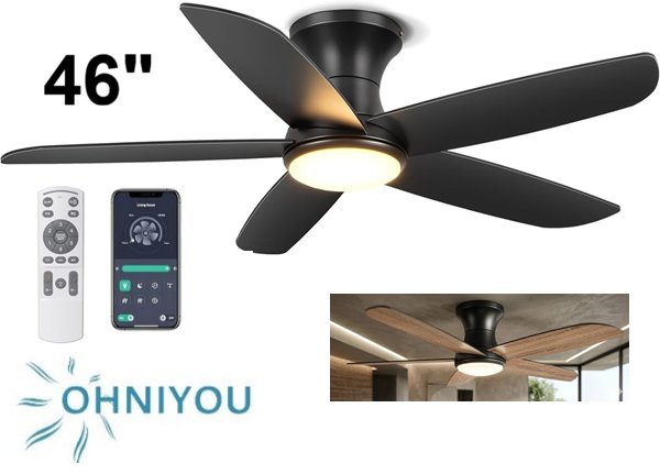 hniyou low profile Reversible flush mount Ceiling Fan with Lights and Remote & App Control - 46" Wood/black - (model: glx099-x)