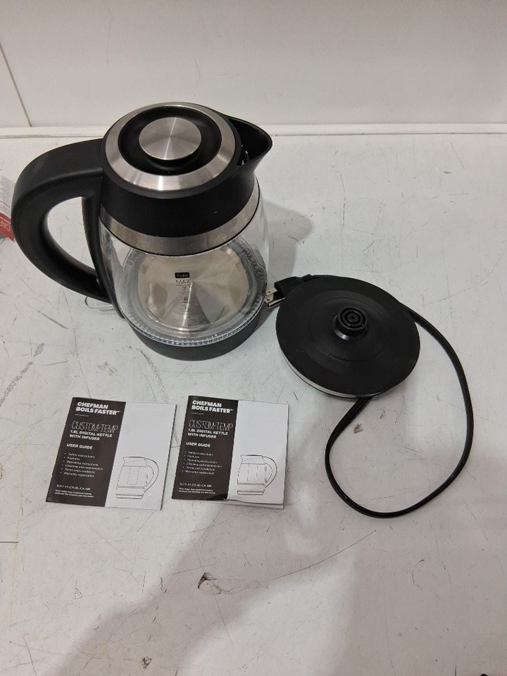 item has some hard waster markings around edge of the lid and some markings on kettle and kettle platform ,( see photos)
