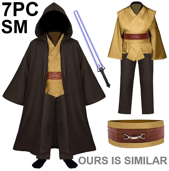 7PC KIDS FICLWIGKIS Tunic Costume Jedi Halloween Cosplay Costume - SMALL - BROWN/WHITE