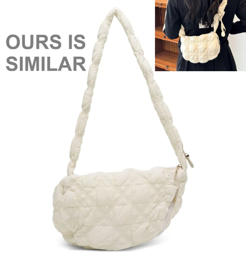 WOMENS ADJUSTABLE QUILTED MINI PUFFER SHOULDER/CROSSBODY BAG - IVORY WHITE