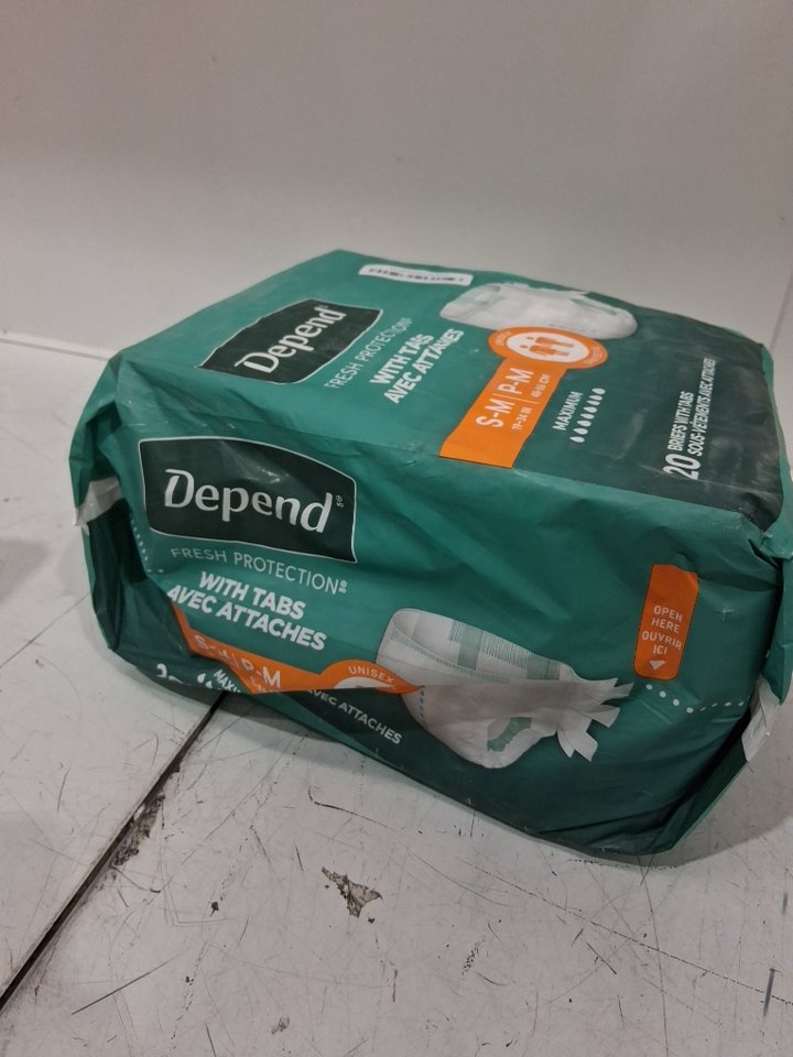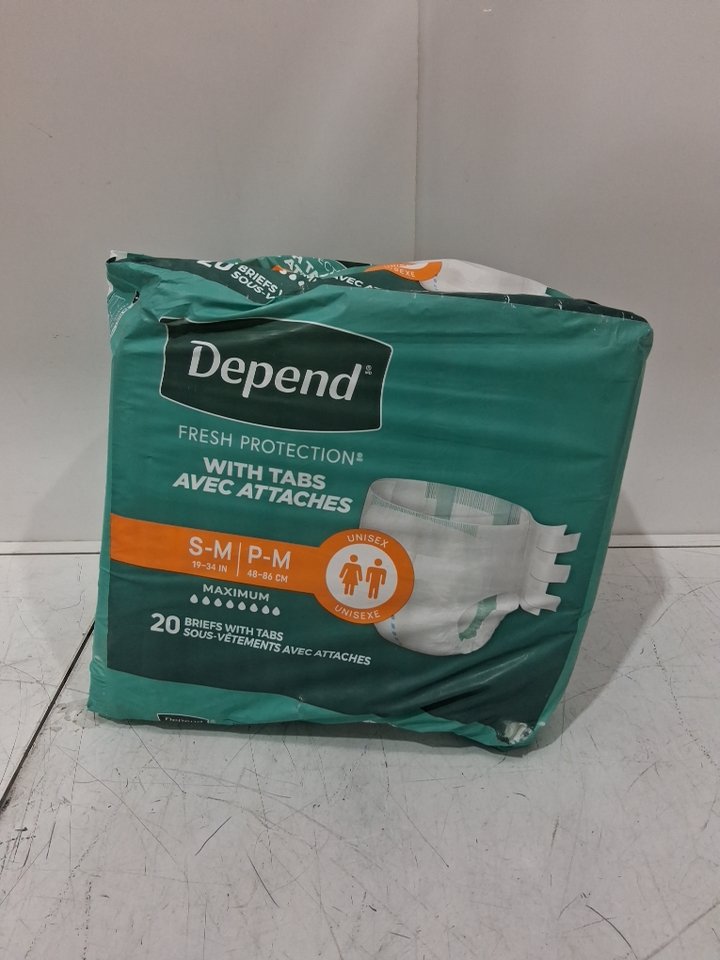 20PK adults unisex DEPENDS fresh PROTECTION With TABS - MAXIMUM BRIEFS - SMALL/medium - WHITE