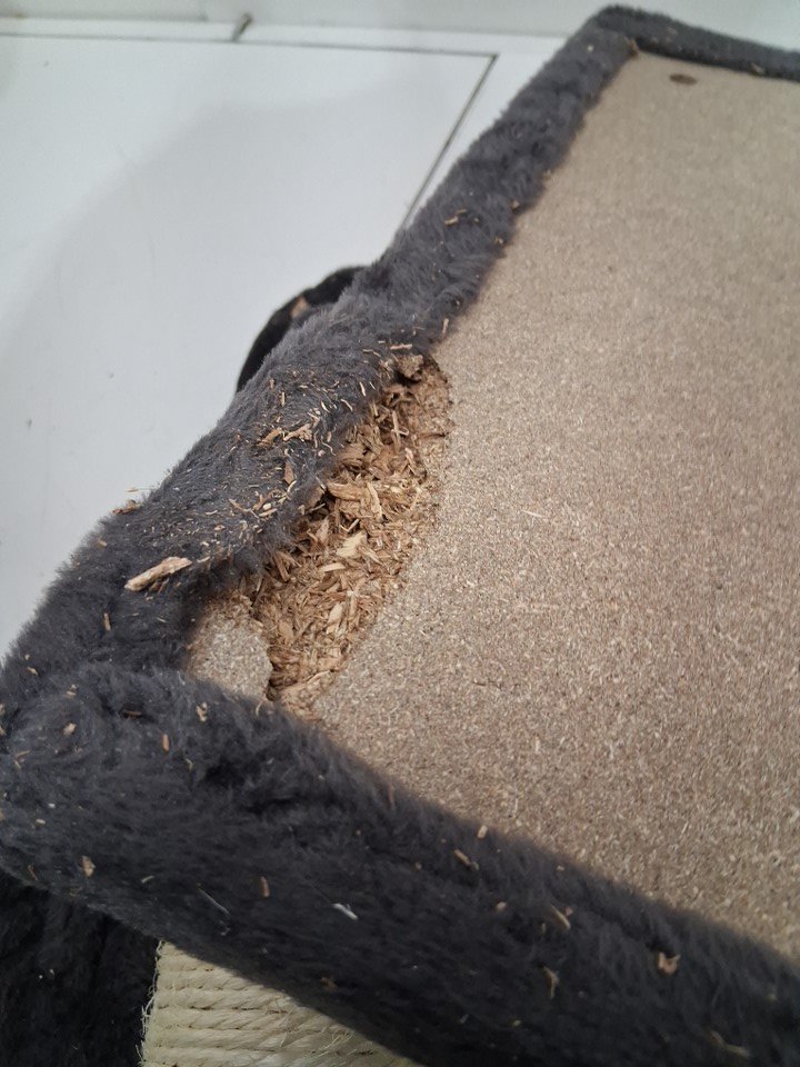 There is a broken part on the bottom of the base (see photo) It is at a corner where the posts are not attached and will not effect building item.