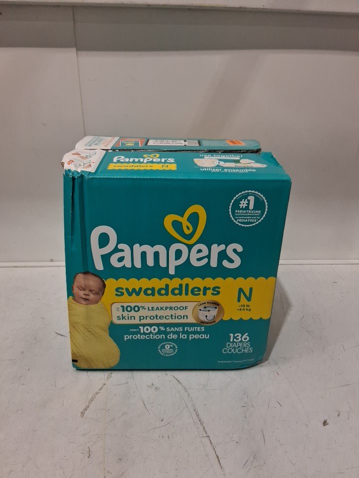 136PK PAMPERS SWADDLERS DIAPERS - NEWBORN SIZE