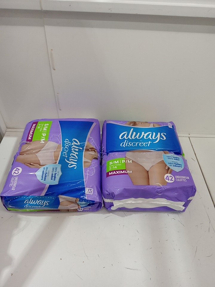 84PK Women's Always Discreet Maximum Protection Zero Leaks Underwear (2PKS of 42 Each) - Small/Medium - Light Pink