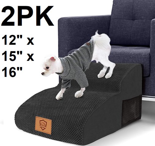 2pk Myiosus 2-Step high density foam pet stair with side pocket - 12" x 15" x 16" - Black