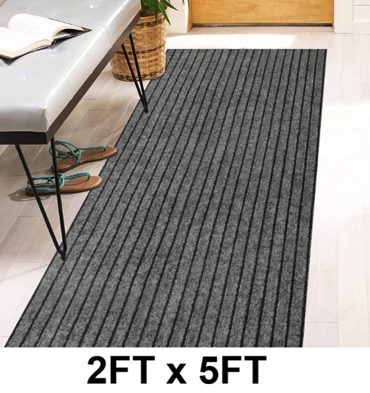 Indoor Outdoor STRIPE Utility RUNNER RUG Carpet - 2FT X 5FT - GREY