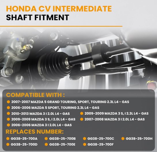 Front Right CV Axle Intermediate Shaft Assembly Compatible with Mazda 3 2006-2013 Mazda 5 2006-2007 2.0L 2.3L L4 - BLACK (MODEL: GG38-25-700C)