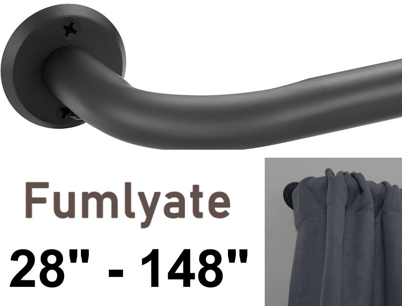 Fumlyate curved end Curtain Rod - 28"-148" - matte black