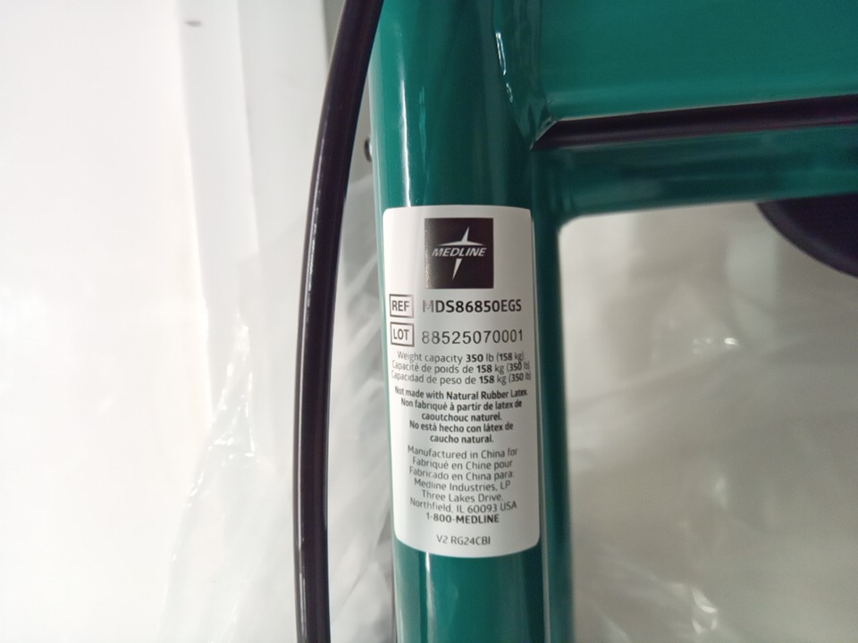medline basic steel rollator walker with 8" wheels and adjustable sheet, green/black, (model: MDS86850EGS8)