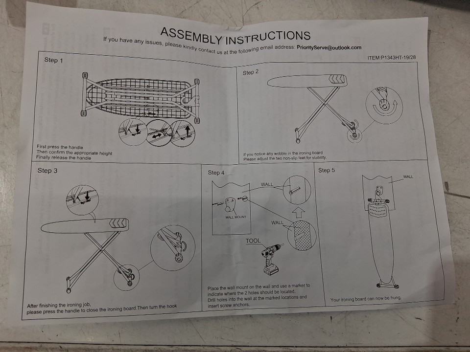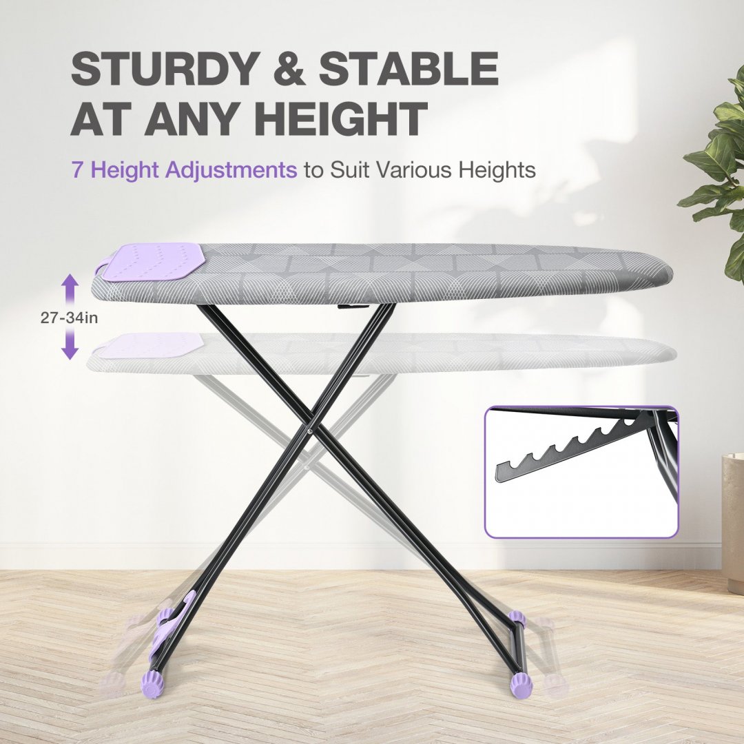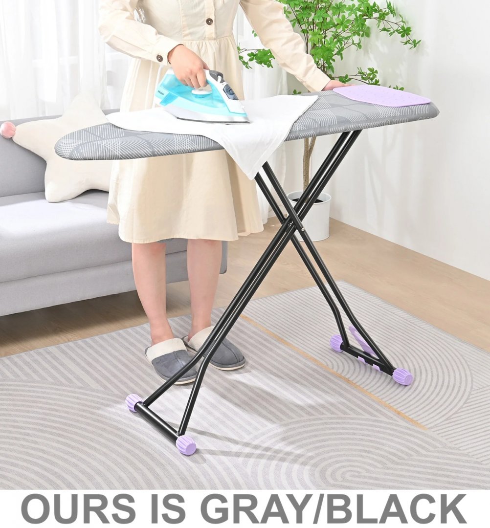 kingrack full size ironing board with adjustable height and hanger - 43" x 13" - gray/black - (model: ryp1343ht-19-28n2)
