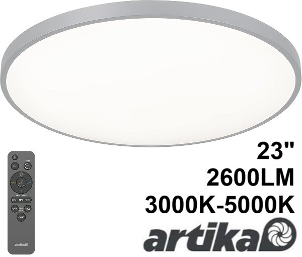 artika Jupiter Flush Mount Ceiling Light with Remote - 2600 lumens - 3000K-5000K - 23" - white/silver (Model: cl-brrt-c)