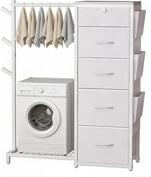 luxspire 5 Fabric Drawers & 3 Coat Racks & Side Pockets Small Dresser - white (model: HC250085)