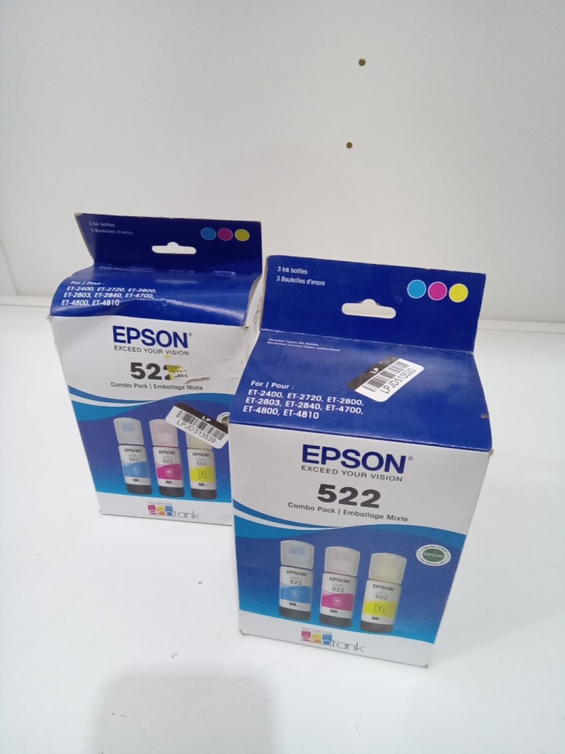 2 (3PC) Epson 522 Combo Pack Ink Refill Bottles for Select EcoTank Printers - 65mL Each - Cyan, Magenta, Yellow (Model: T522520-S/CP)