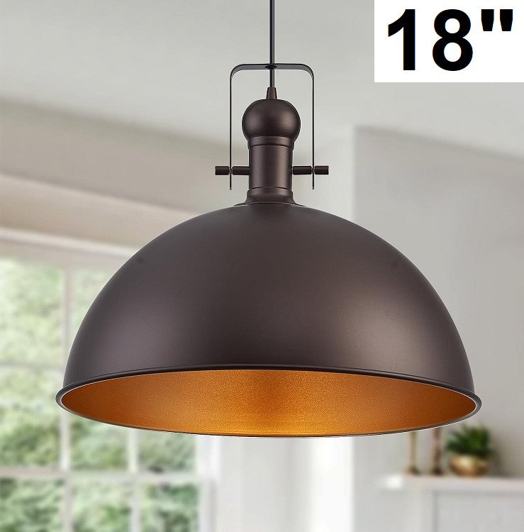 ALAISLYC adjustable Hanging dome Farmhouse Pendant Light fixture - 18" - matte black/gold (model: jf2315l-1p-bk-bg/a0084)