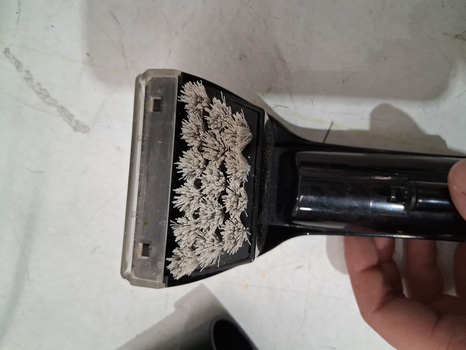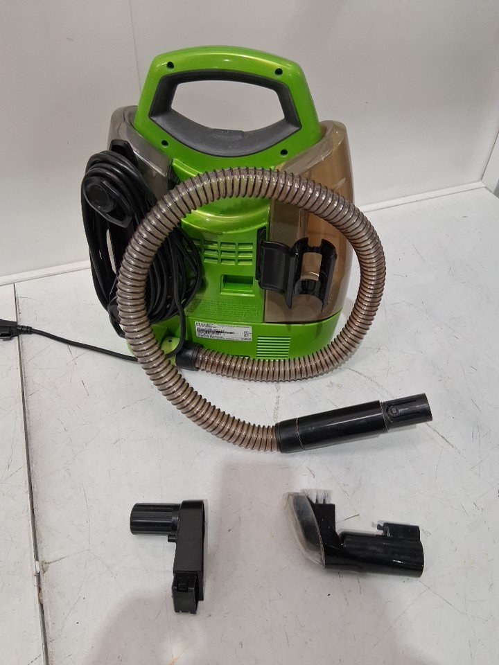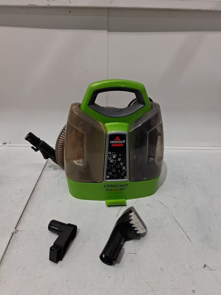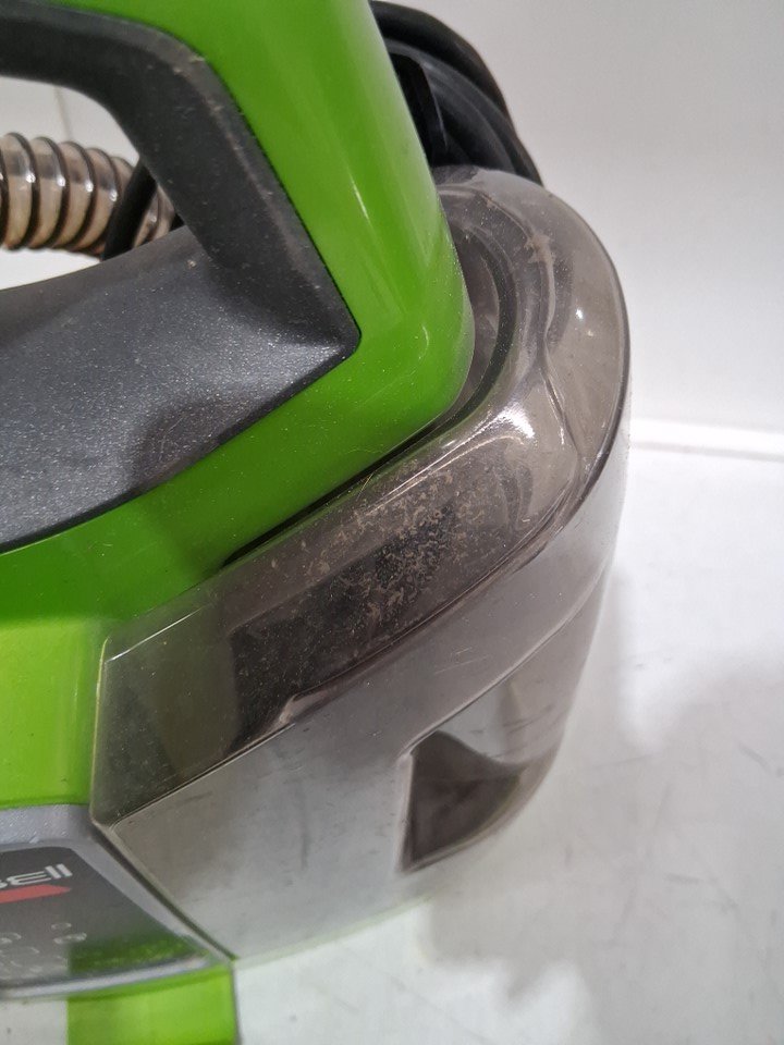 item has residue and debris inside on accessories and outside body item is missing clear and green attachment, and bottle of solution ( see photos)