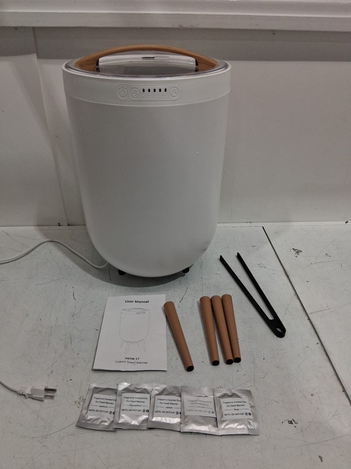 GAMOHOME Towel Warmer Luxury Heated Bucket with Bluetooth Speaker, Ambient Light, and Auto Shut Off – Fits Two 40"x70" Towels - White (Model: HSTW-17)