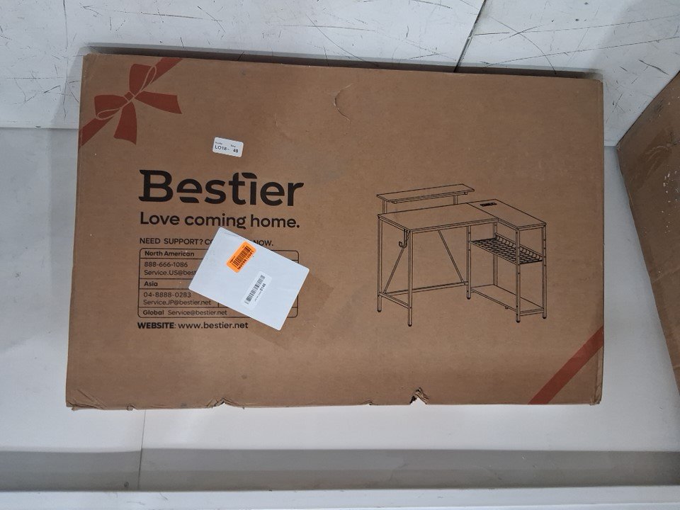 BESTIER L-SHAPED GAMING DESK WITH POWER OUTLET AND LED LIGHTS - 42" - BLACK
