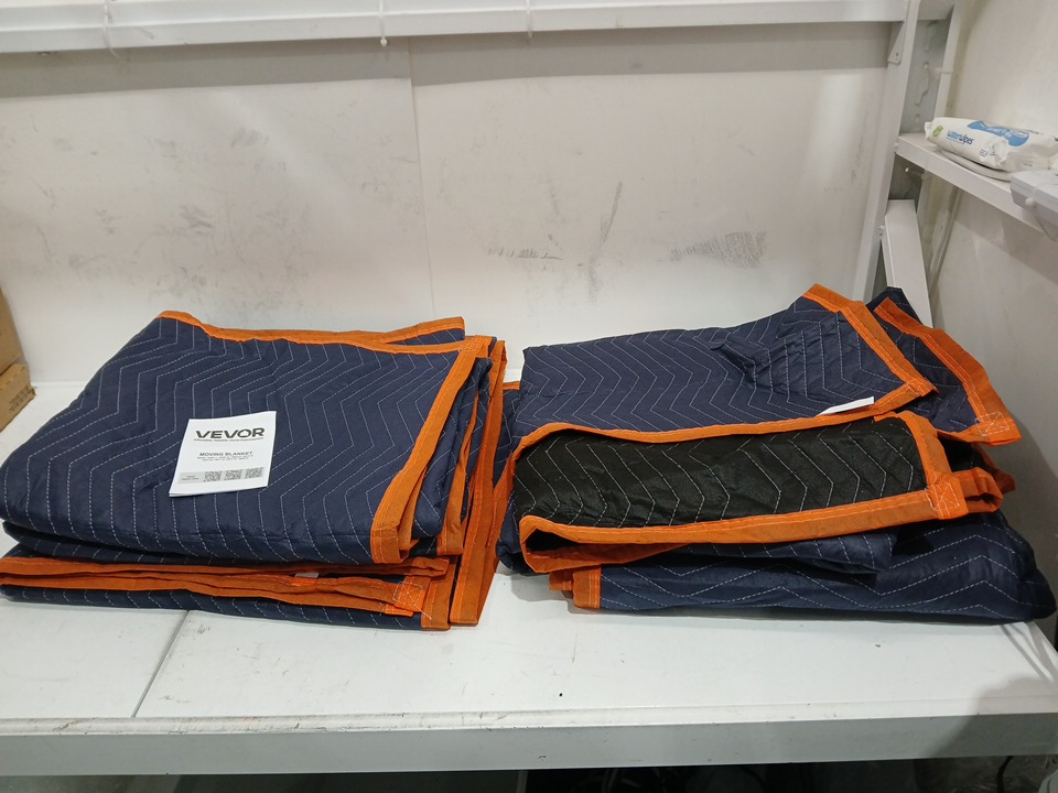 4pk moving blankets - 80" x 72" - non-woven & recycled cotton packing blanket - blue/orange (model: DCBYT80X72IN5J3EWV0)