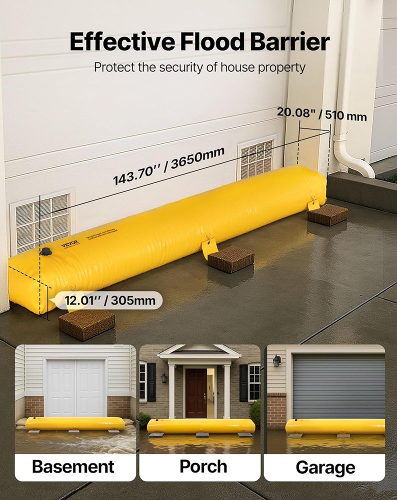 VEVOR Flood Barrier Height Sandbag Alternative - 12FT X 20" - YELLOW/BLACK (model: Flood Barrier 12 ft x 20 in)