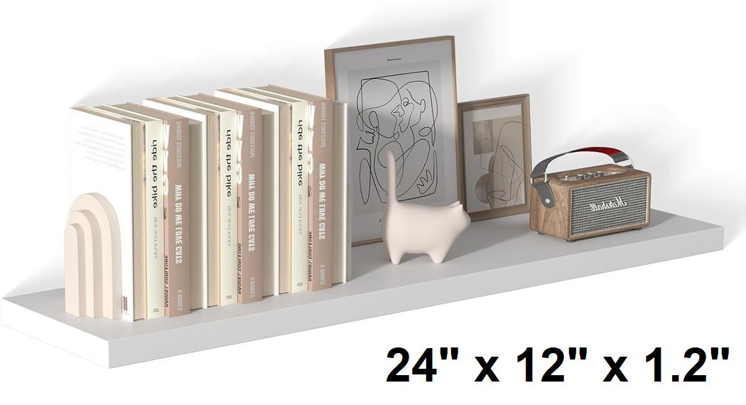 landmok large floating wall shelf - 25lb capacity - 24" x 12" x 1.2" - white - (model: fs1201-24-wh1)
