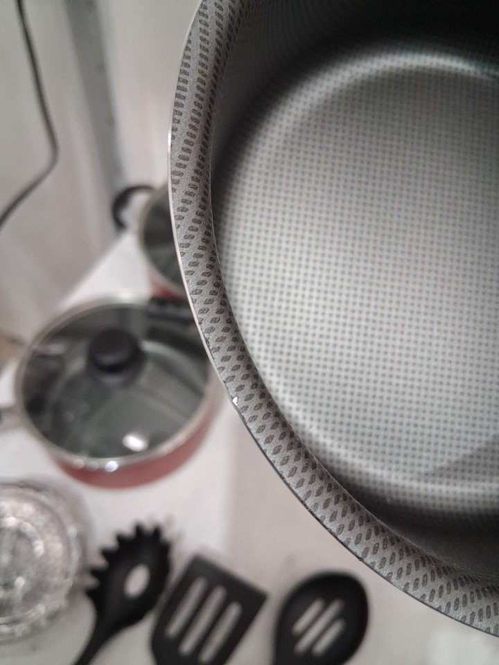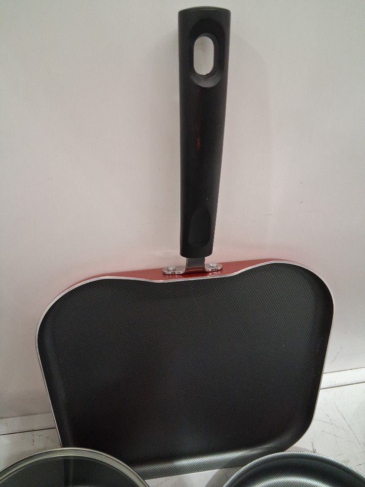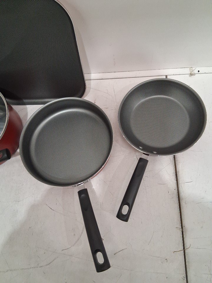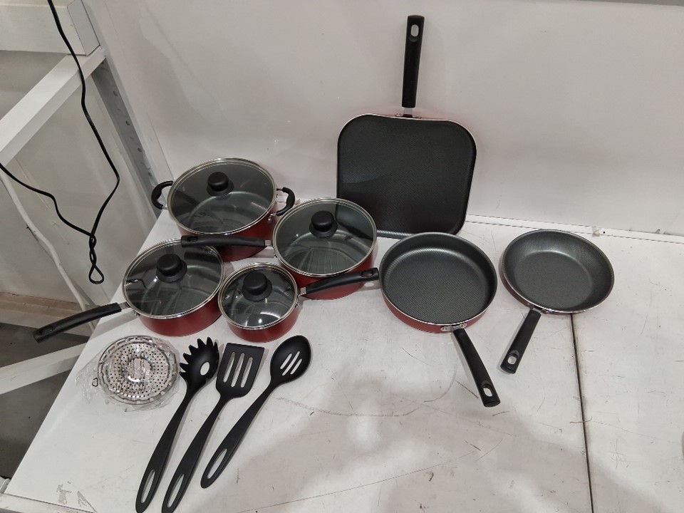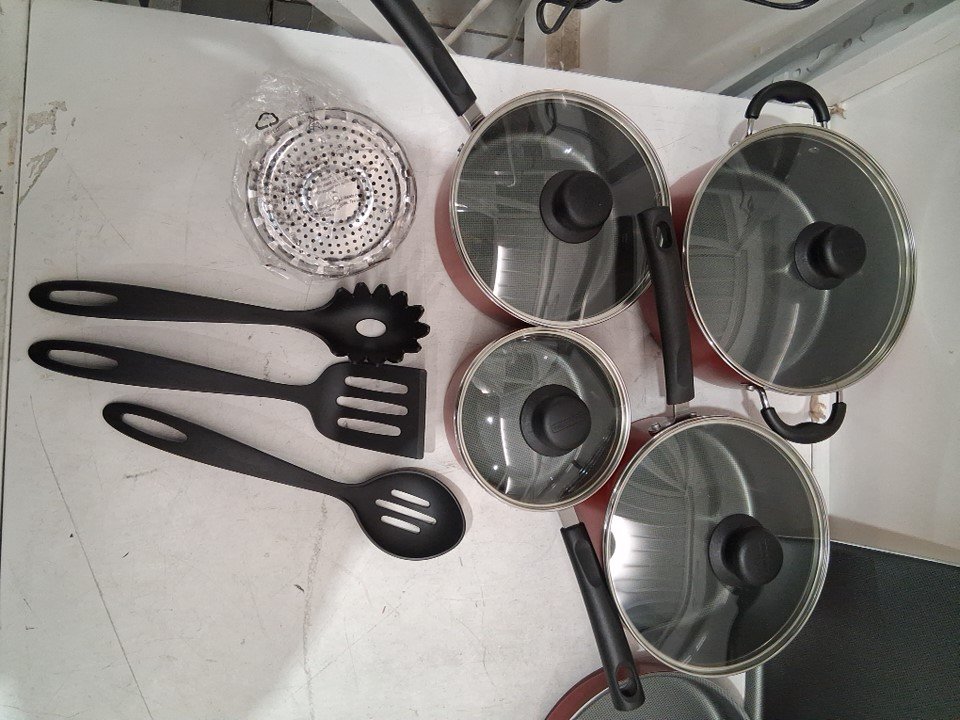Missing some Utensil Pieces of the set see photos Set has minor knicks and scratches on pots and pans see photos