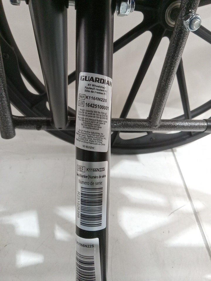 MEDLINE GUARDIAN K1 WHEELCHAIR - 16" - 300LB CAP - BLACK (MODEL: K1166N22S)