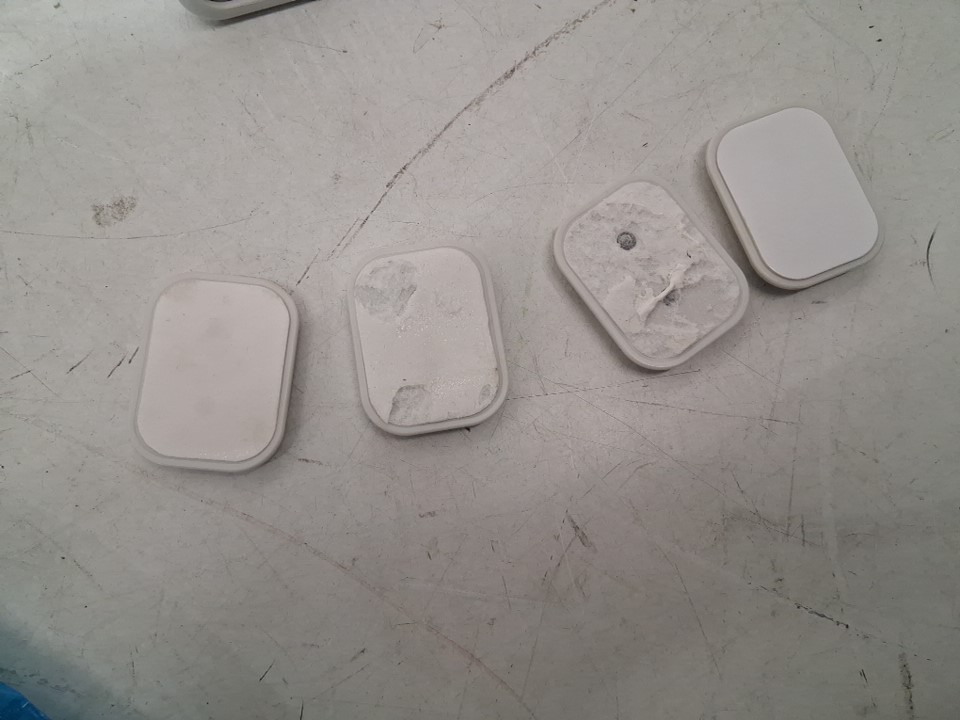 Used sticky pads indicate previous attempts at instillation (See photos).