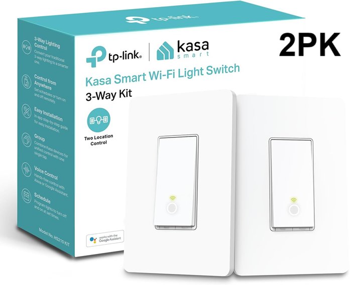 Kasa By Tp-link Smart WiFi Light switch 3 way kit for LED Lights - Neutral Wire Required - Works With Alexa & Google Home - White (Model: HS210kit)