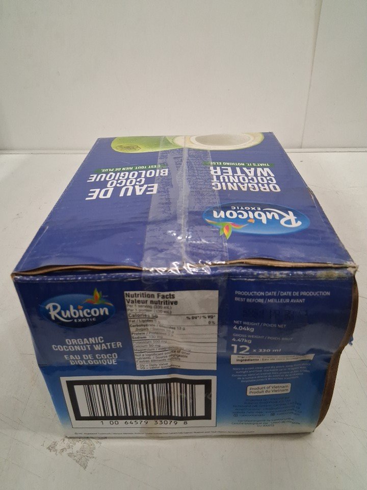 12PK *Recently Expired* Rubicon 100% Natural Organic Coconut Water - 330ml (EACH) - 3960Ml Total