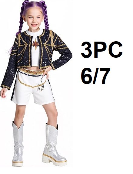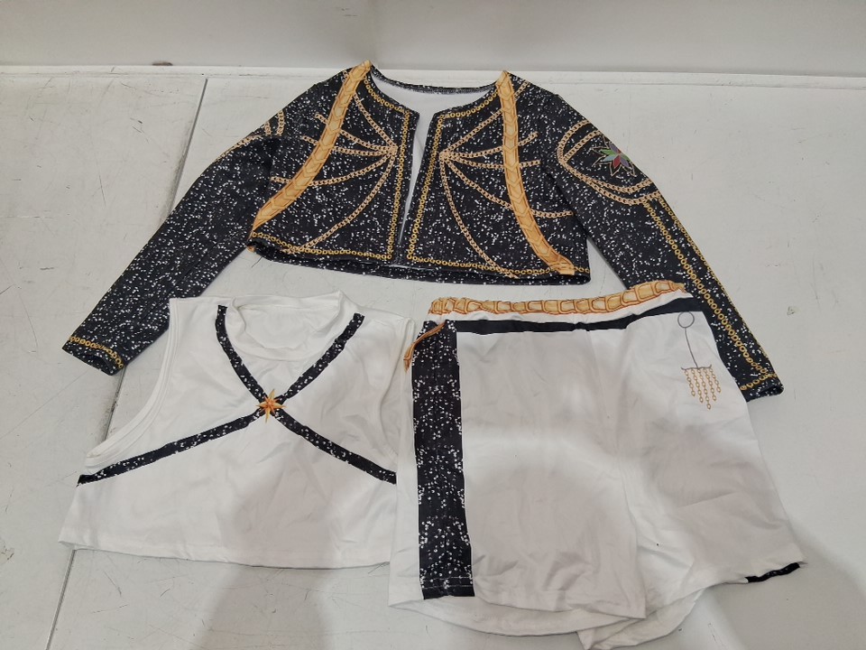 3PC girl's fanskaty pop singer costume - size 6/7 - black/white