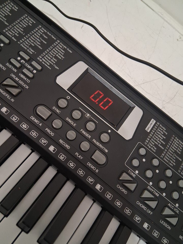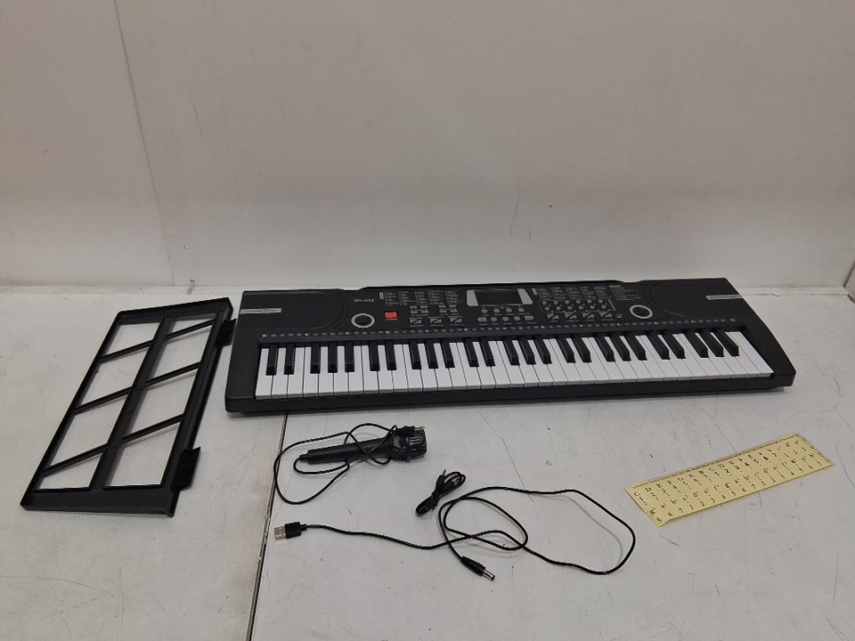 BEGINNERS 61-KEY ELECTRONIC KEYBOARD PIANO WITH MUSIC sheet STAND & microphone - BLACK/WHITE (MODEL: BD-612)