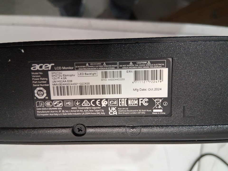 acer ebmiphux home office ultra-thin monitor with height adjustable swivel & tilt stand, usb type-c & hdmi 1.4 ports - amd freesync, 1ms vrb, 100hz - 27" (model: sh272u)