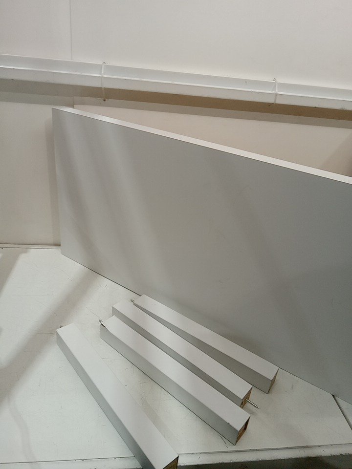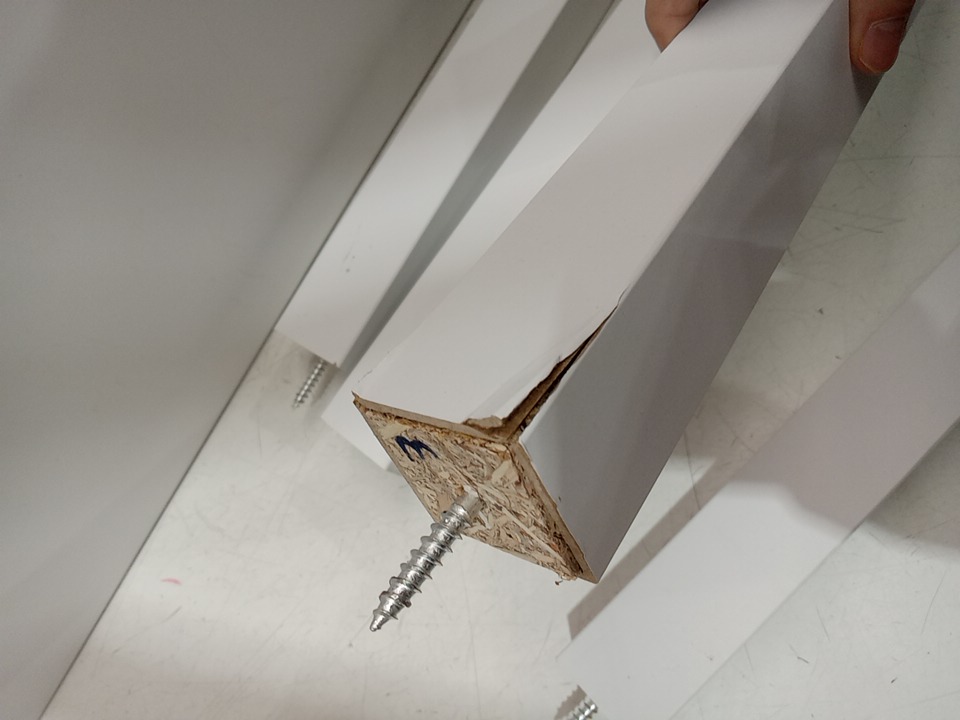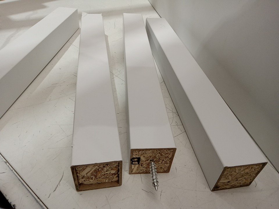 Scuffs/scratches on it, can likely be painted. One table leg has some damage to the edges, can likely be fixed or replaced.