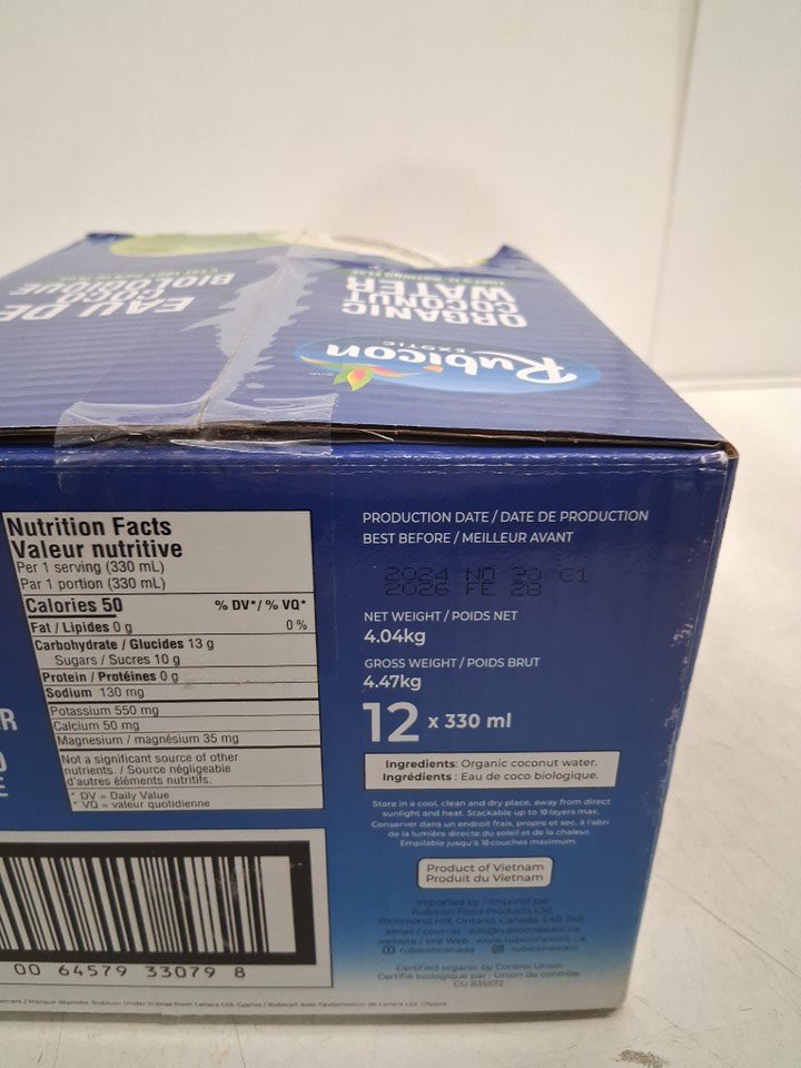 12PK *Recently Expired* Rubicon 100% Natural Organic Coconut Water - 330ml (EACH) - 3960Ml Total
