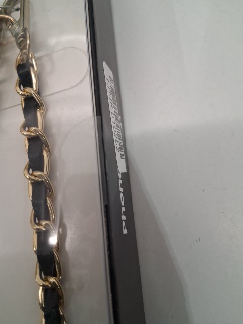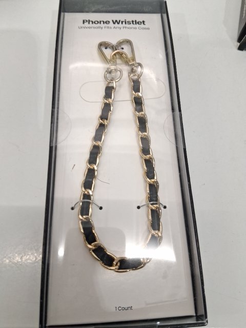 universal fit phone wristlet - 12.5" - Gold Chain/Black Leather
