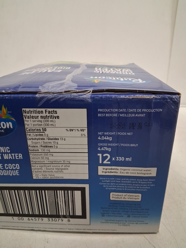 12PK *Recently Expired* Rubicon 100% Natural Organic Coconut Water - 330ml (EACH) - 3960Ml Total